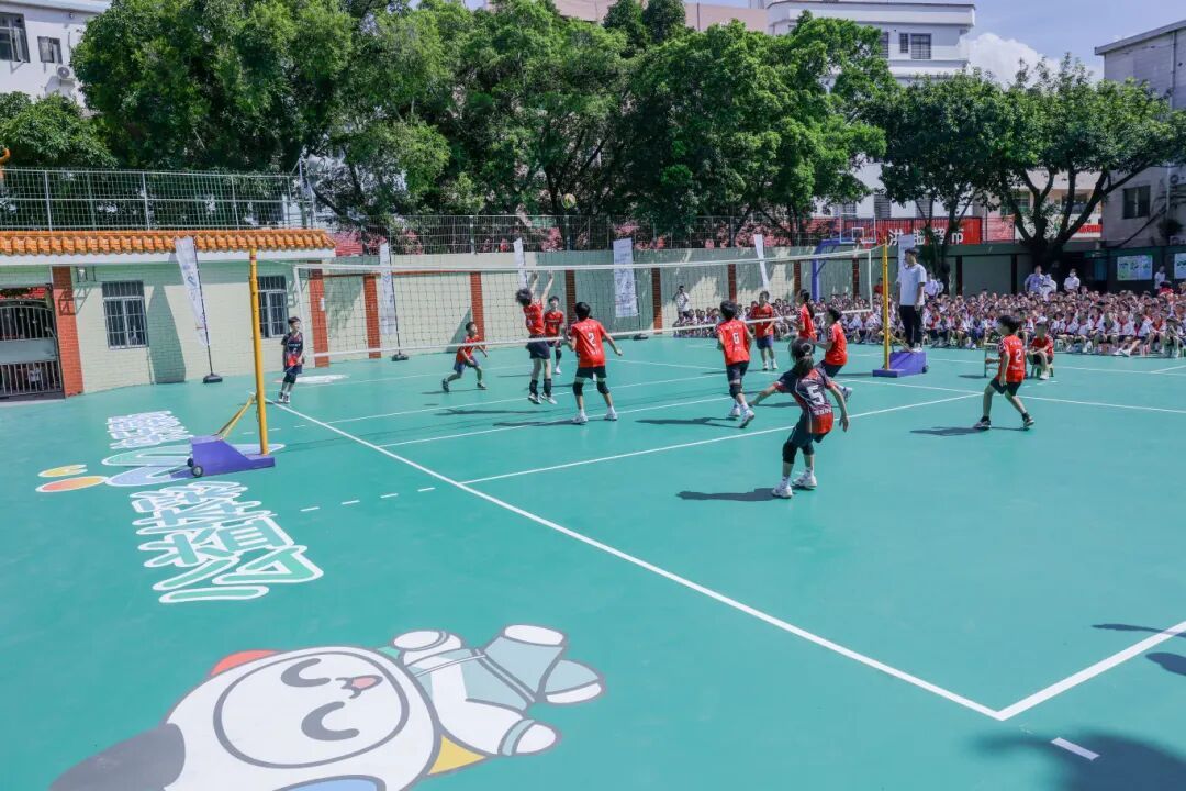 活动的高潮出现在运动场揭牌仪式。嘉宾们共同为升级后的运动场揭牌。随着红绸落下,崭新的运动场正式启用,标志着北山小学体育教育迈入新阶段。随后,北山小学排球队队员们展开教学对抗比赛,队员们在赛场上奋勇拼搏、默契配合,充分展现了排球运动的魅力与学子们永不言弃的精神,现场加油声此起彼伏。