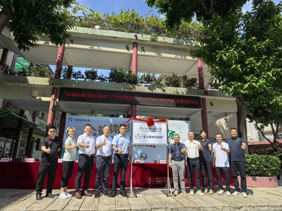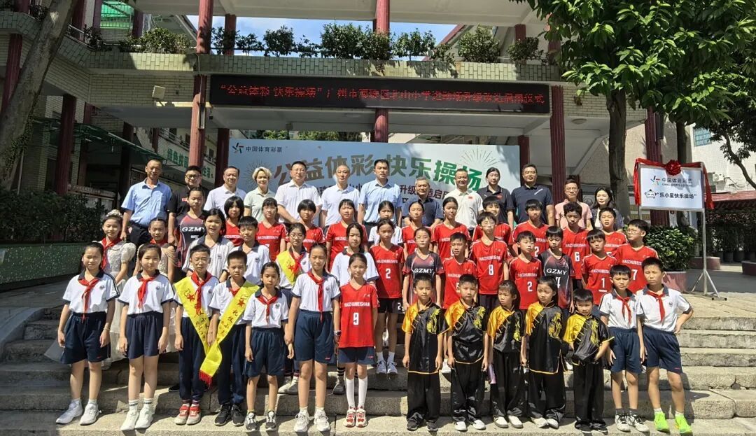 广州市体育彩票管理中心、广州体育职业技术学院、海珠区文广旅体局、海珠区教育局、海珠区业余体校等单位的多位代表,与全校师生共同见证“乐小星快乐操场”正式启用。